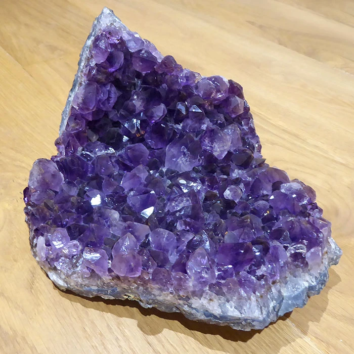 Ametis dalam bentuk natural punya daya tarik visual yang kuat. Struktur kristalnya yang tumbuh secara alami bikin setiap batu terlihat unik dan tidak bisa disamakan satu sama lain. Ini yang bikin ametis sangat cocok dijadikan produk dekorasi premium. Misalnya sebagai pajangan meja, elemen display di ruang tamu, atau bahkan centerpiece dalam desain interior.